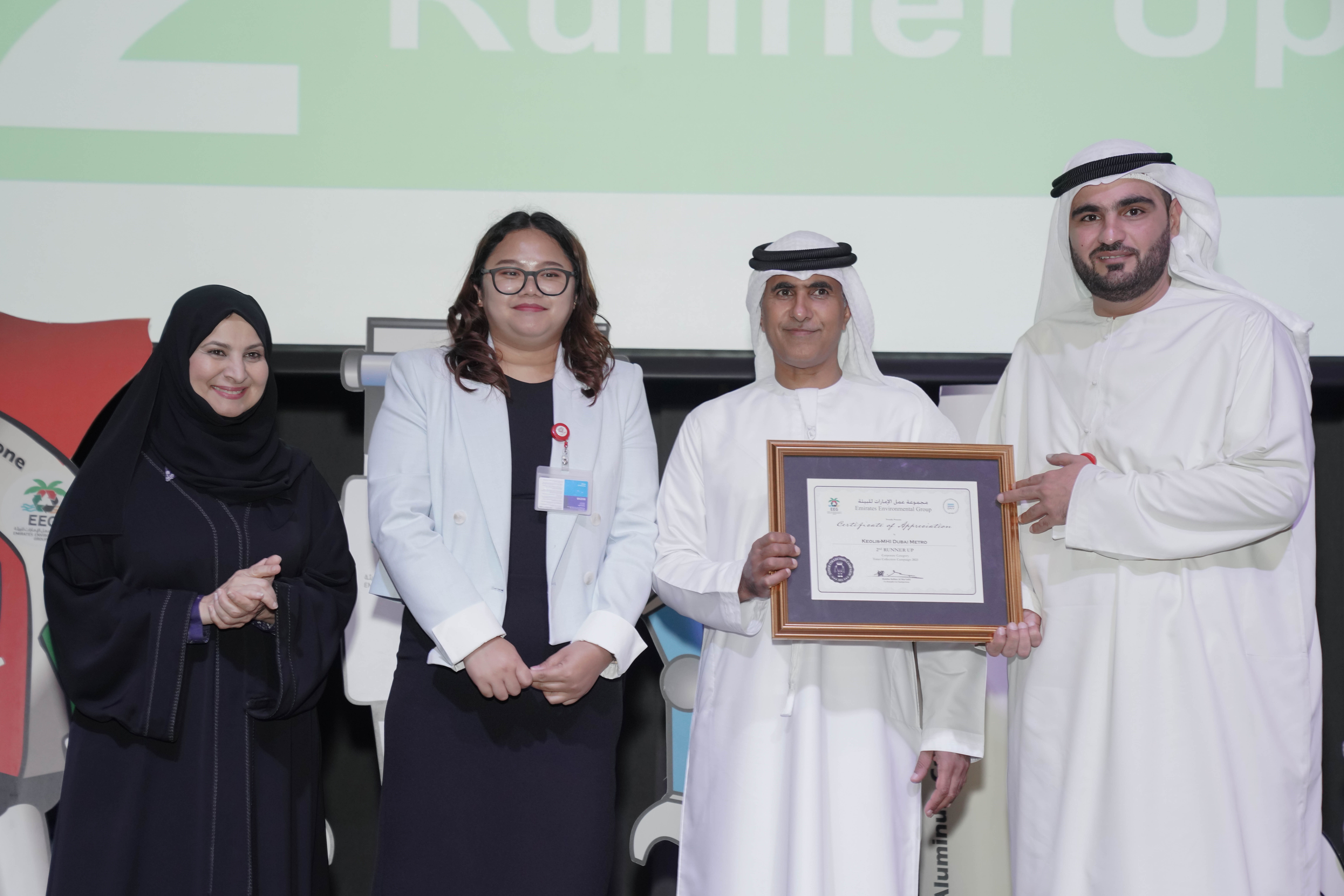 Keolis MHI is proud to announce that it has been recognized as one of the top three recyclers in the Emirates Environment Group’s “Toner Recycling Campaign.” This prestigious award was presented to Keolis MHI at the 27th cycle of Emirates Recycling Awards in recognition of our significant contributions to environmental sustainability and recycling efforts.